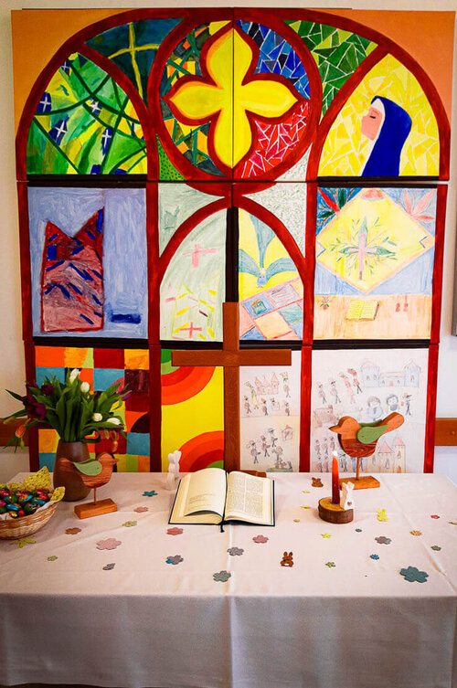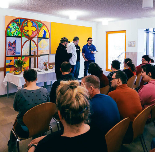Die Andacht begann mit dem feierlichem Gesang der Mitglieder des Musik- und Klangkurses und daran anschließend übernahm der Glaubenskurs die Ansprache in der Andacht und begleitete die Anwesenden durch besinnliche Gebete und Gedanken zum Ostergeschehen bis zur Auferstehung Jesu Christi.