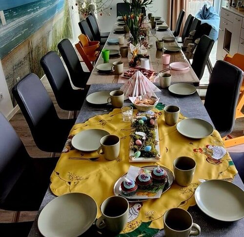 Und so gaben sich alle Mitarbeiter:innen des Jugendhilfezentrums Strelahaus besondere Mühe, um den Kindern und Jugendlichen eine wundervolle Osterfeier zu gestalten. Nach Fragen wie "Kommt denn auch der Osterhase?", half nur die Antwort "Ja, der kommt bestimmt!".