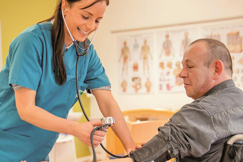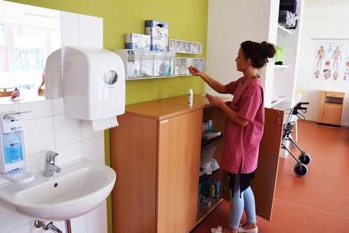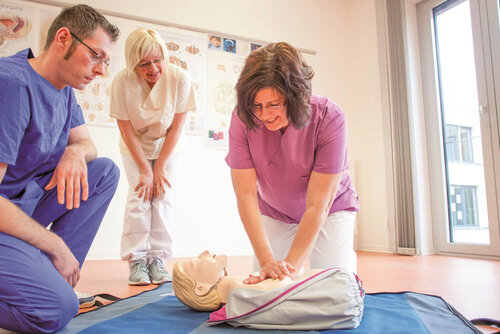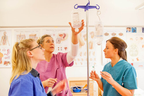 Das Skill Center der Gesundheits- und Pflegeschule ist eine Lernumgebung, die ähnlich der Berufspraxis eingerichtet ist. Hier lernen und trainieren die Schüler*innen geforderte Grundfähigkeiten und Grundfertigkeiten, die sie für die Praxis ihrer Berufsausbildung benötigen. Sie verbinden die theoretisch erlernten Kenntnisse aus der Schule, mit der Praxis. Somit wird den Schüler*innen eine praxisnahe Umgebung geboten, in der sie ihre Fähigkeiten, Fertigkeiten und Kompetenzen, unter Aufsicht einer Fachperson und ohne den Druck und Stress der Praxis, ausbauen und vertiefen können.