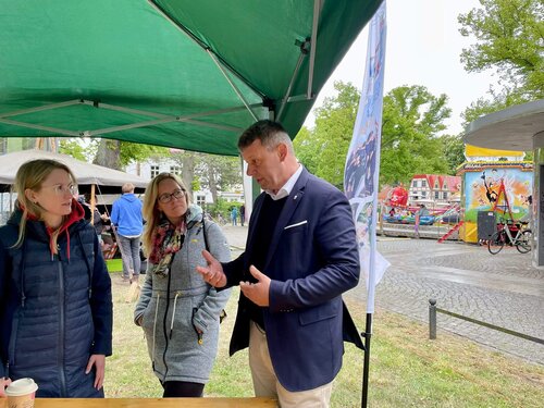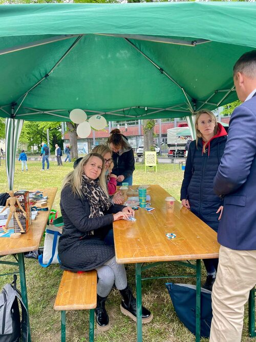 Trotz windigem und regnerischem Wetter herrschte gute Stimmung: Bei Kaffee, kleinen Leckereien und kreativen Bastelangeboten wie dem Perlenarmband-Gestalten kamen viele Besucherinnen und Besucher, ob klein oder groß, mit uns ins Gespräch.