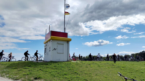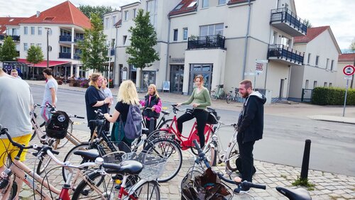 Danach heißt es traditionell rauf aufs Rad: Am ersten Freitag der Erstie-Woche machen allen Neuankömmlinge mit den Dozent:innen eine Radtour durch Greifswald – zur Altstadt mit dem Museumshafen, am Ryck entlang und nach Wieck, wo es leckere Fischbrötchen gibt.